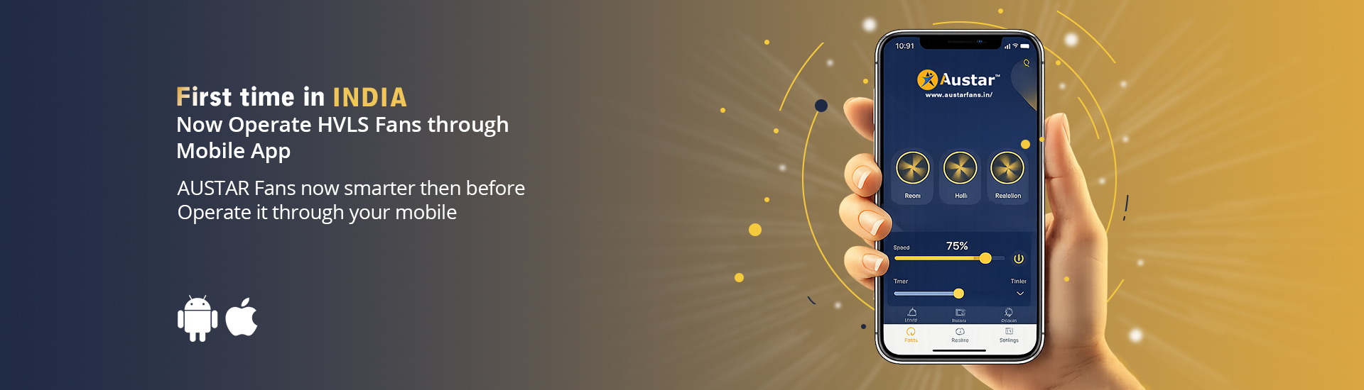 AUSTAR AS series Fan are Geared Type HVLS Fans driven by German make Geared Motors, with five Aero Blades and Single piece die casted Hub. Are controlled through Variable Frequency Drive for Reverse / Forward and speed adjustment features. Complies to international safety standards. Available in Standard Matt Black color and customized color options.