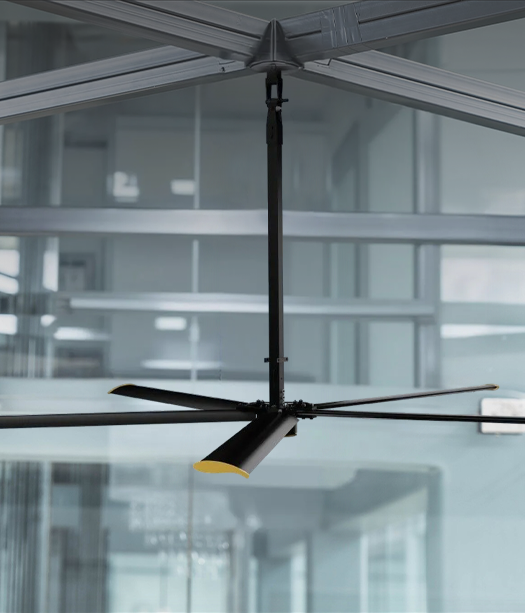 With a sleek glossy black finish and customizable color options, our Gearless HVLS Fan seamlessly integrates into various interiors. Built with high-strength, CE-certified components, it guarantees safety, durability, and exceptional performance. Austar Technologies' HVLS ceiling fans help businesses optimize cooling efficiency, significantly lowering HVAC energy costs while maintaining consistent temperature control. These fans prevent air stratification, reduce heat stress, and improve air quality, making them an ideal choice for industries, commercial buildings, and large open spaces.