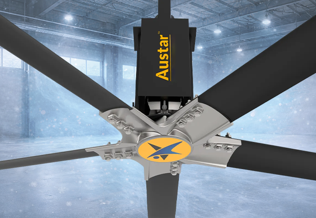 AUSTAR AS series Fan are Geared Type HVLS Fans driven by German make Geared Motors, with five Aero Blades and Single piece die casted Hub. Are controlled through Variable Frequency Drive for Reverse / Forward and speed adjustment features. Complies to international safety standards. Available in Standard Matt Black color and customized color options.